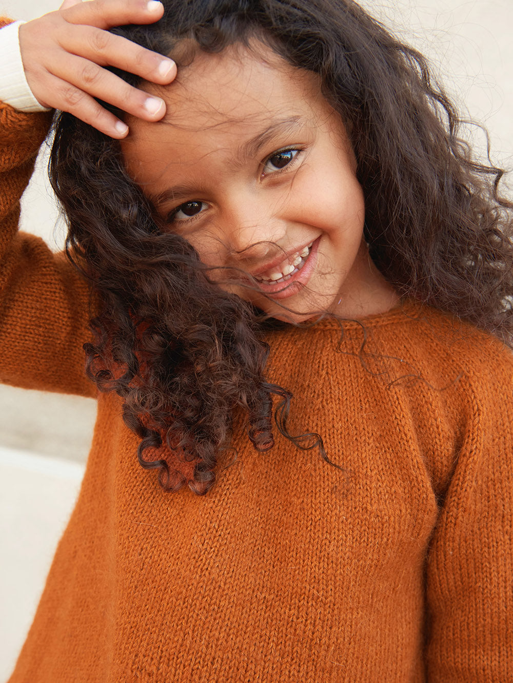 Der Pullover wird von unten nach oben mit einem Faden jeder Qualität mit Sunday und Tynn Silk Mohair gestrickt.