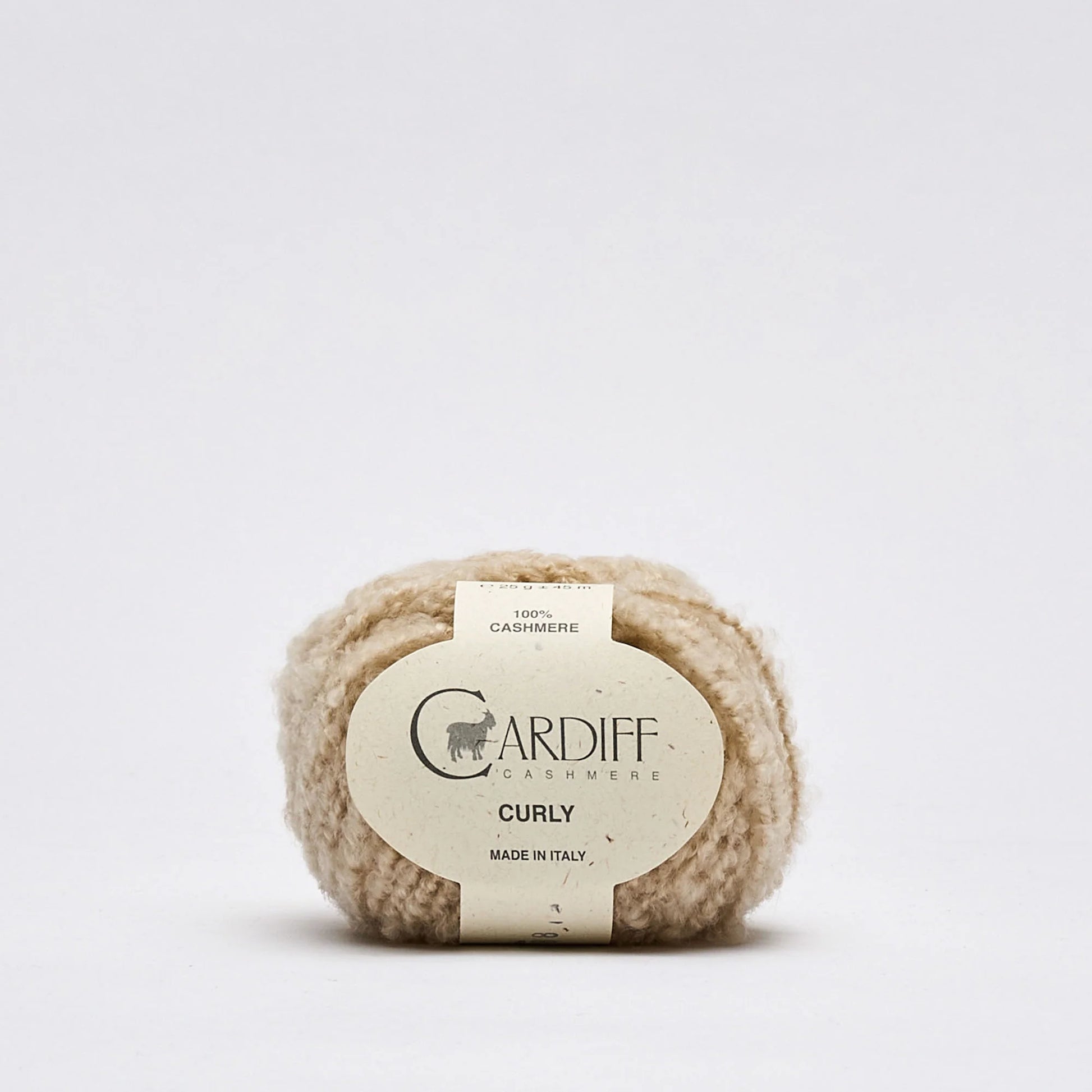 Curly von Cardiff ist ein hochwertiges Bouclé-Garn aus 100 % Kaschmir, das durch seine lockige Struktur eine besondere Textur bietet. Es eignet sich ideal für kuschelige Accessoires und Kleidungsstücke, die direkt auf der Haut getragen werden.