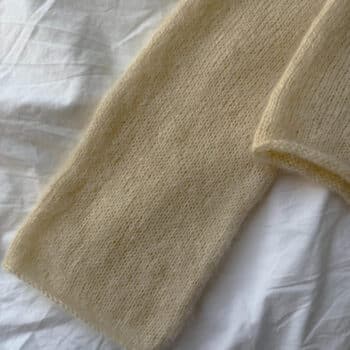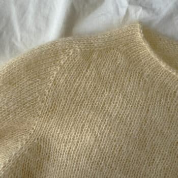 Die Ivy Blouse von Petite Knit ist ein zarter, leichter Mohairpullover, der dank des feinen Mohair-Seide-Garns luftig und angenehm auch an warmen Tagen getragen werden kann. Ihr schlichtes, elegantes Design passt perfekt über Sommerkleider oder zu hoch geschnittenen Hosen. Die klassischen Rollsäume verleihen dem Oberteil einen zeitlosen Look. Von oben nach unten in Runden gestrickt, beginnt die Bluse am Hals mit verkürzten Reihen für eine erhöhte Passform. Zunächst werden die Schultern mit Zunahmen geformt, dann die Ärmel, bevor Raglan-Zunahmen für Ärmel und Körper folgen. Unter den Armen teilt sich die Passe, sodass Ärmel und Körper separat weitergestrickt werden.