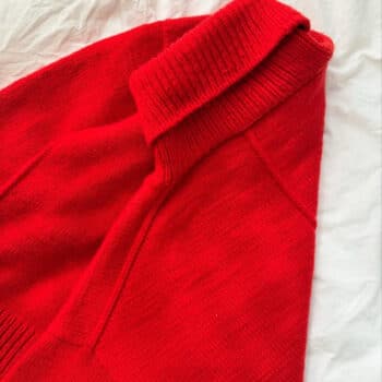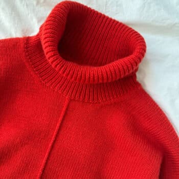 Der Scarlet Sweater von Petite Knit ist ein knallroter Pullover mit Rollkragen und schönen Hebemaschen-Details. Auf Vorder- und Rückenteil, sowie an den Seiten und den Innenseiten der Ärmel werden Maschen abgehoben, sodass eine besondere Maschenlinie entsteht. Auch am Rücken ziert ein I-Cord die Schulterpartie.